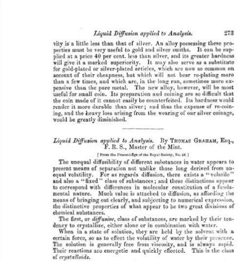 Thomas Graham將在羊皮紙發(fā)現(xiàn)的特殊彌散現(xiàn)象稱為“透析”。當(dāng)年發(fā)表的論文:Liquid Diffusion Applied to Analysis 成為臨床透析的重要基礎(chǔ)理論,同時(shí)他十分有遠(yuǎn)見的預(yù)言——這一發(fā)現(xiàn)將會在醫(yī)學(xué)上得到應(yīng)用。