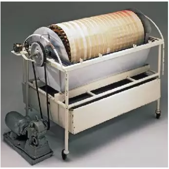 1943年,荷蘭人威廉?科爾夫(Willem Kolff)用一個(gè)木條制成旋轉(zhuǎn)的鼓桶,纏繞了30~40米醋酸纖維素膜,放到一個(gè)透析液缸里。患者的血液是從手腕動(dòng)脈進(jìn)入半透膜腸衣,通過轉(zhuǎn)動(dòng)的鼓推動(dòng)血液體外循環(huán),置于鹽水浴中攪拌。由于腸衣是半滲透的,尿素等廢物被排出,大分子蛋白被保留。然后將經(jīng)滲透后“干凈” 的血液輸送回患者體內(nèi),就這樣“人類第一臺”透析機(jī)便誕生了。
