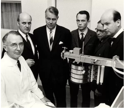 第一次血管通路手術(shù)發(fā)生在1948年,尼爾斯Nils Alwall(1904-1985)(左一)和萊納特?奧斯特格林(Lennart ?stergren)(左四),在瑞典名校隆德大學(xué)對轉(zhuǎn)鼓人工腎進(jìn)行了改進(jìn),使其能通過負(fù)壓進(jìn)行超濾。但由于各種并發(fā)癥,1949年被迫停止了該類手術(shù)。