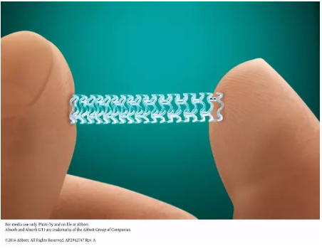 盡管血管支架的意義廣受推崇,但血管支架的永久性植入本身仍然是無法回避的遠期風(fēng)險源,因此,生物全可降解支架就成了下一步探索突破的焦點。在這個方向上,雅培走在了世界的前端。2011年,雅培的生物可降解支架(BRS)Absorb在歐洲上市;2016年在美國獲批上市。