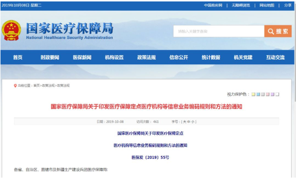 2019年10月8日,國家醫(yī)保局發(fā)布《醫(yī)療保障定點(diǎn)醫(yī)療機(jī)構(gòu)等10項(xiàng)信息業(yè)務(wù)編碼規(guī)則和方法》,公布定點(diǎn)醫(yī)療機(jī)構(gòu)、醫(yī)保按病種結(jié)算病種以及醫(yī)保日間手術(shù)病種等10項(xiàng)信息業(yè)務(wù)編碼規(guī)則和方法。