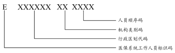 第1部分:醫(yī)保系統(tǒng)工作人員標(biāo)識碼,用1位大寫英文字母“E”表示。