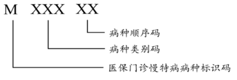 第1部分:醫(yī)保門診慢特病病種標(biāo)識碼,用一位大寫英文字母“M”表示。