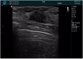 腺體內(nèi)部清晰顯示一低回聲塊影,形態(tài)不規(guī)則,邊界模糊,邊緣呈毛刺狀,內(nèi)部見砂礫樣鈣化