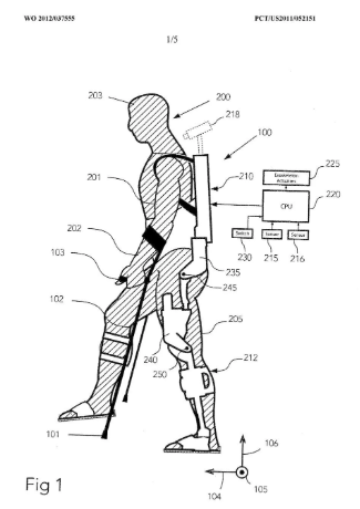 2010年,伯克利仿生研究所研制出的一種由電池提供動力的機械骨骼系統(tǒng)“eLEGS“。這是世界上第一款不使用繩或鏈達到自然行走目標的外骨骼,使用者通過手臂姿勢控制,向前移動右拐杖,則左腿隨之向前移動,幫助截癱患者擺脫輪椅以自然步態(tài)行走。