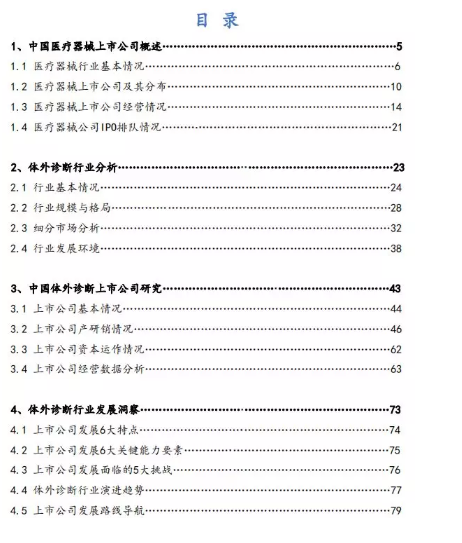 從目錄上看,白皮書包含體外診斷行業(yè)分析、IVD上市公司數據分析以及IVD行業(yè)發(fā)展洞察等內容,其中每個章節(jié)都有大量圖表、數據及分析報告,小編覺得,這份報告對于IVD人了解行業(yè),做規(guī)劃和布局是非常有幫助的。