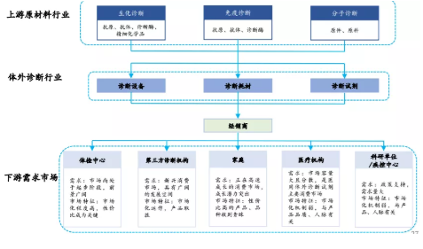 (3)試劑開發(fā)系列化:體外診斷的產品向系列化發(fā)展,從疾病預防、早期篩查到臨床診斷再到療效檢測最后到預后判斷。不再局限于臨床診斷,開始向上下游不斷擴展,形成系列產品。如針對孕婦群體的孕前檢查、孕期檢查、后期檢測等。