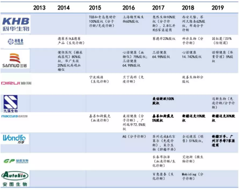 2、IVD上市公司大多逐漸由檢測試劑生產商向體外診斷全產業(yè)鏈轉型