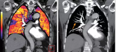 相比傳統(tǒng)成像方式,肺部柔性減影技術(shù)通過人工智能,對(duì)平掃數(shù)據(jù)和CT肺動(dòng)脈血管掃描數(shù)據(jù)進(jìn)行智能比對(duì),解碼并識(shí)別各個(gè)器官(肺、氣管、肺動(dòng)脈、肺靜脈、主動(dòng)脈等)的空間位置,并在三維空間中進(jìn)行體素級(jí)的柔性配準(zhǔn),從而極大提升了不同序列數(shù)據(jù)的空間位置的一致性。通過肺部柔性減影技術(shù)可得到肺強(qiáng)化碘圖,可以顯示出傳統(tǒng)CTPA圖像看不到的小栓塞病變,提高了栓塞檢出率,其結(jié)果甚至可與SPECT吻合。