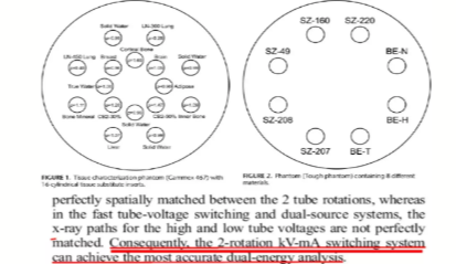 能譜檢查的出現(xiàn),略微緩解了這一矛盾。但能譜檢查需要預(yù)設(shè)專用方案。如沒有在掃描時(shí)使用專用能譜方案,則無法在檢查后進(jìn)行回顧性分析。同時(shí),能譜檢查輻射劑量較高,缺乏標(biāo)準(zhǔn)化等一系列問題,使能譜成像這一方法至今無法進(jìn)行大規(guī)模的臨床普及。
