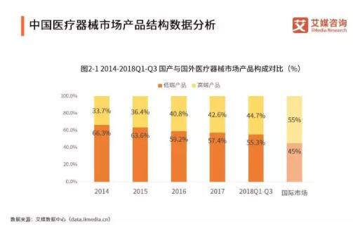 艾媒咨詢分析師認(rèn)為,相比于全球醫(yī)療器械市場(chǎng),近三年中國(guó)醫(yī)療器械市場(chǎng)的結(jié)構(gòu)已趨向優(yōu)化但結(jié)構(gòu)依然嚴(yán)重不平衡,高端醫(yī)療市場(chǎng)將成為下一個(gè)發(fā)力點(diǎn)。