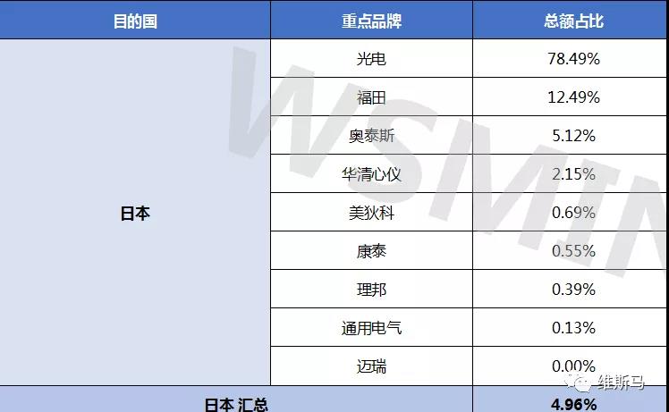 日本市場為中國心電圖出口第五大市場,共計9家出口商,占全年心電圖出口4.96%的份額。其中光電在日本市場占有率高達(dá)78.49%。