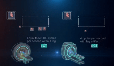 下面這兩張動(dòng)圖是常規(guī)CT與靜態(tài)CT的對(duì)比: