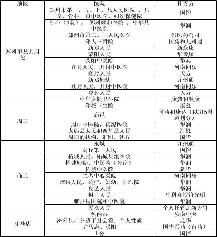 事實上,九州通、華潤醫(yī)藥、國藥等藥事巨頭近年來高歌猛進的藥房托管已經為今天的耗材集采和托管服務埋下了深厚的伏筆——本質是大規(guī)模并購后的醫(yī)藥物流服務延伸入院的頂層利益格局的滲透。下面是河南省在2015年的藥事(含部分耗材)供應托管統(tǒng)計表,有興趣的同仁可以深度了解一下: