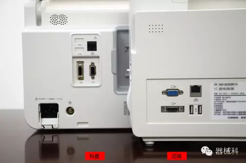 兩家的電源線都采用了標(biāo)準(zhǔn)的電源插頭,這種電源線比較普遍,應(yīng)急時(shí)比較容易找到合適的線。邁瑞線長1.8,一般情況下夠用??坡?米長,在使用上可以更加靈活。線短,整理起來方面;線長,使用場景更多。