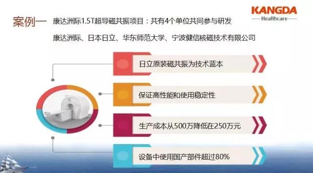 這個項目共有4個單位共同參與研發(fā)和產(chǎn)業(yè)化,分別是康達洲際、日本日立、華東師范大學、寧波健信核磁技術(shù)有限公司,研發(fā)的產(chǎn)品則是以日立1.5T超導磁共振為基礎(chǔ)上進一步升級——一臺完全與世界最先進技術(shù)同步的磁共振設(shè)備。