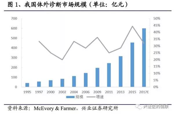 我國體外診斷行業(yè)相較于歐美市場,起步較晚,但發(fā)展快速,2015年,我國IVD市場規(guī)模達(dá)450億,預(yù)計2017年市場容量有望擴(kuò)增至600億。