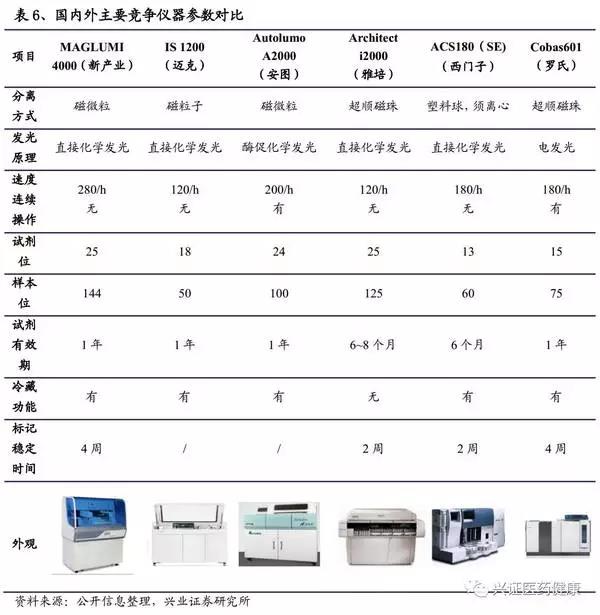 從以上進(jìn)程可看出,技術(shù)到位、價格優(yōu)勢以及找準(zhǔn)市場切入口是其完成進(jìn)口替代的關(guān)鍵。發(fā)光行業(yè)與生化行業(yè)有其區(qū)別,發(fā)光本質(zhì)為免疫反應(yīng),各廠家的技術(shù)平臺完全不同,為保證結(jié)果的準(zhǔn)確性和穩(wěn)定性,將迫使檢驗人員使用同一廠家提供的試劑和分析儀。在各大醫(yī)院對于各個項目的檢查都基本專機(jī)專用,未來也很難將其開放化。所以,在發(fā)光的進(jìn)口替代進(jìn)程中,試劑和儀器的一體化研發(fā)是必須的。國內(nèi)化學(xué)發(fā)光龍頭企業(yè),例如,新產(chǎn)業(yè)、安圖生物、邁克生物等都具備試劑和儀器的一體化研發(fā)能力。參考生化的替代道路,5年內(nèi)將爆發(fā)大規(guī)模進(jìn)口替代。